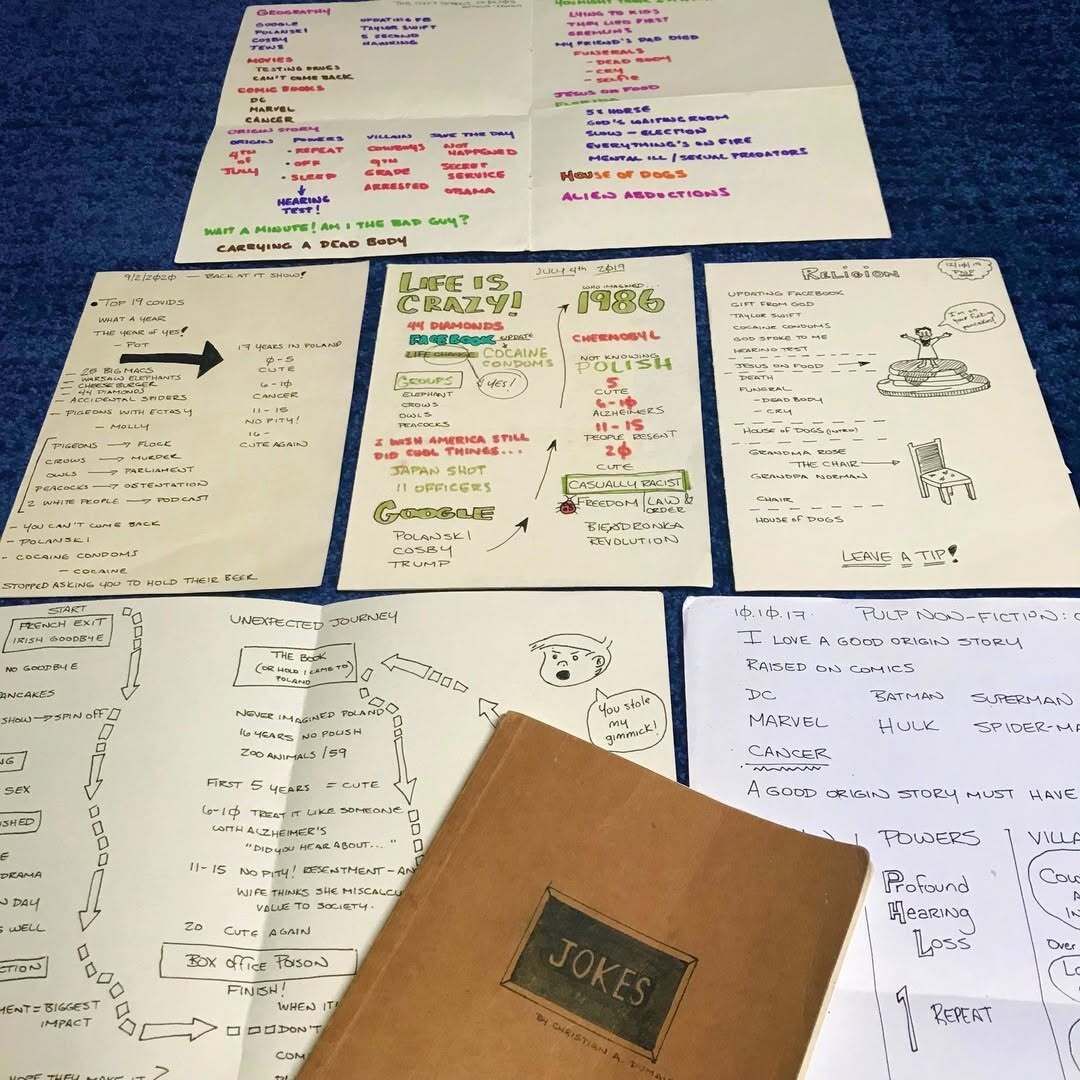 Some of you wrote about how you liked my comedy notes (cheat sheets) from last week’s newsletter, so I figured I’d focus on that this week.